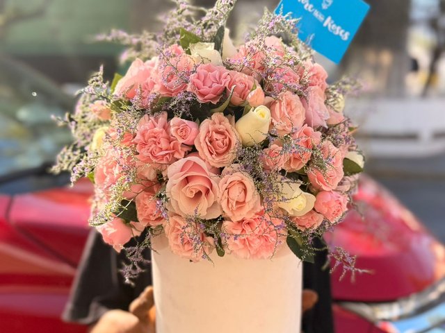 100 rosas con follaje baby/nube y clavel rosa , incluye papel coreano de mejor calidad y presentación
