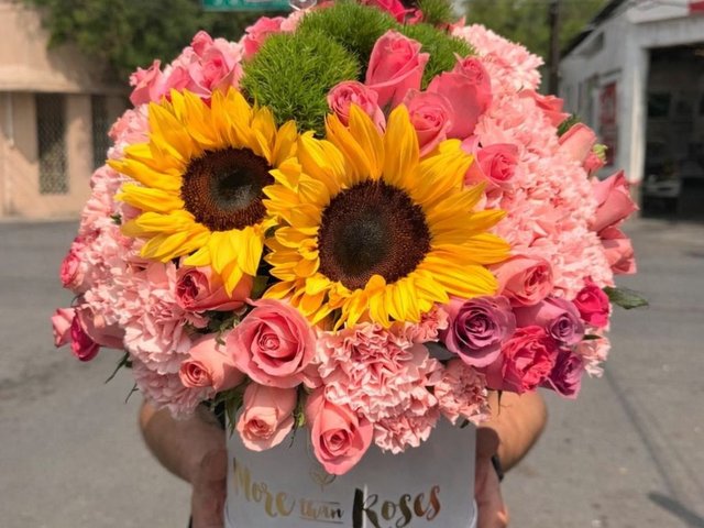 150 rosas, 5 girasoles, clavel rosa y margaritas incluye papel coreano de mejor calidad y presentación